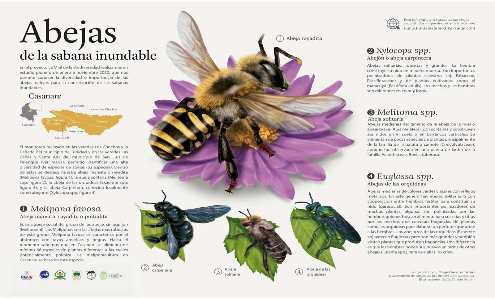 Desde que arrancamos el proyecto en 2020, hemos creado varias estrategias para compartir nuestros aprendizajes sobre abejas, meliponicultura y conservación de sabanas inundables y cultura llanera. ¡Conócelas, descárgalas y compártelas!